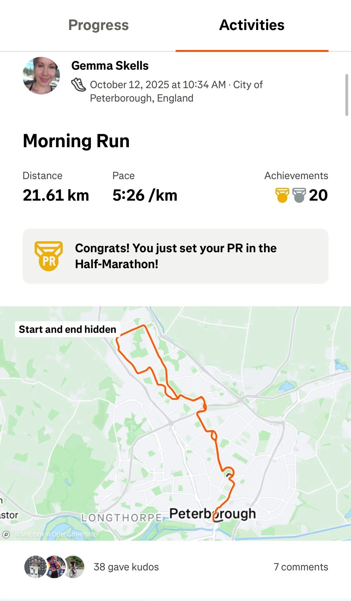 In the end, I achieved what I set out to do — a personal best and an uninjured finish. But it took so much more mental energy than I expected, for what seemed like a comparatively small return. Compared to last year’s race, which felt effortless and joyful, this one was bloody hard work.